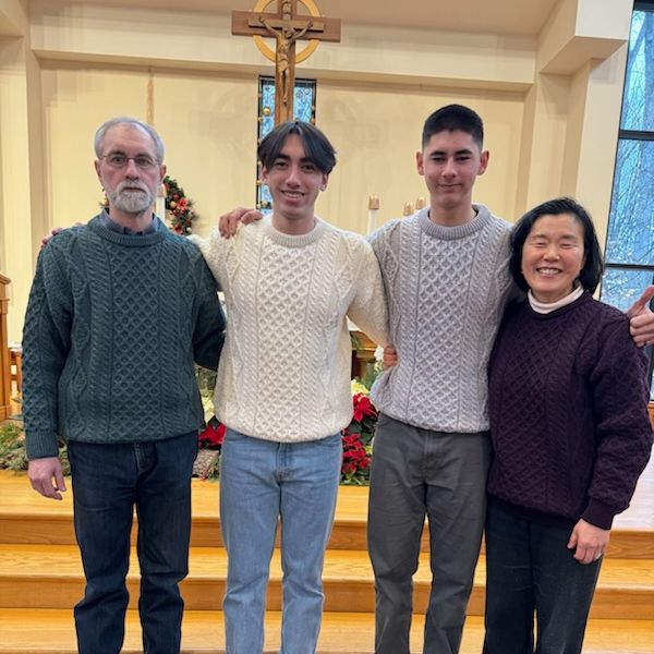 Matching sweaters at church